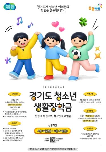 시 관계자는 “경기도 청소년 생활장학금은 경제적 어려움을 겪는 청소년들이 학업을 이어가는 데 도움되도록 마련된 제도”라며 “지원 대상에 해당하는 청소년들이 기간 내 신청해 혜택을 받을 수 있길 바란다”고 말했다.