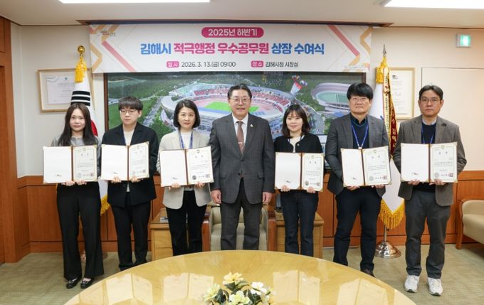 (포탈뉴스통신) 김해시는 시민 체감도가 높은 2025년 하반기 적극행정 우수사례를 선정하고 이를 추진한 우수공무원 7명을 선발해 시상했다고 13일 밝혔다.