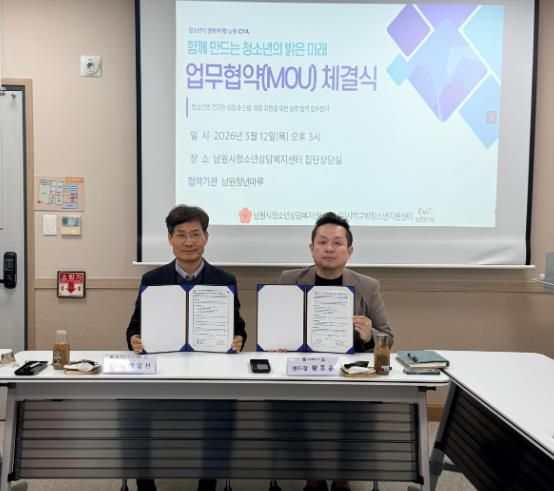 (포탈뉴스통신) 남원시가 위탁하고 남원CYA가 운영하는 남원시학교밖청소년지원센터는 지난 12일 남원청년마루와 학교 밖 청소년의 건강한 성장과 자립 지원을 위한 업무협약(MOU)을 체결했다고 밝혔다.