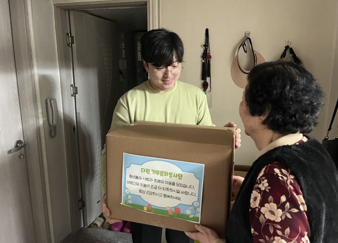 (포탈뉴스통신) 다원 기부문화봉사단은 지난 15일, 동구 방촌동 일대 저소득 홀몸 어르신 세대를 직접 방문해 생필품 꾸러미 25상자(200만원 상당)를 전달했다.