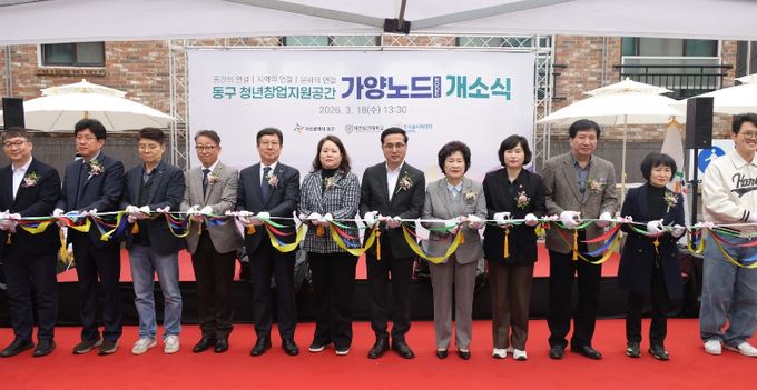 (포탈뉴스통신) 대전 동구(구청장 박희조)는 18일 대전보건대학교‧한국폴리텍Ⅳ대학 대전캠퍼스와 함께 청년 창업지원 공간 ‘가양노드(NODE)’ 개소식을 개최하고, 본격 운영에 들어갔다고 밝혔다.
