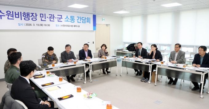 (포탈뉴스통신) 수원특례시의회는 19일 의회 세미나실에서 공항 소음피해지역 주민들과 군, 시 관계자가 함께하는 ‘민·관·군 소통 간담회’를 개최하고 소음피해 해소를 위한 실질적인 대응 방안 마련에 나섰다.