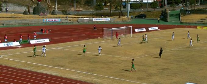 전반 29분 19초 류수혁 선수의 날카로운 패스를 받은 전정호 선수가 상대 수비망을 원활하게 공략하며 첫 득점을 올렸다.