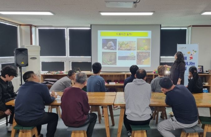 22일 열린 첫 시간에는 ‘작은 씨앗의 꿈’을 함께 읽고 종이 인형극을 감상한 뒤 압화를 활용해 자신의 이름을 꾸며보는 시간을 가졌다. 참가자들은 동화구연에 큰 흥미를 보이며 높은 만족감을 나타냈다.