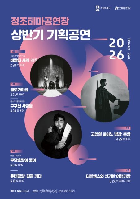 (포탈뉴스통신) 수원문화재단은 오는 4월부터 6월까지 정조테마공연장에서 전통예술의 현대적 확장을 주제로 한 기획공연 4편을 선보인다.