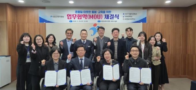 (포탈뉴스통신) 경상북도포항교육지원청은 3월 25일 10시에 포항교육지원청 교육장실 및 세미나실B에서 온동네 돌봄․교육센터(늘봄포항)의 온종일 공동 돌봄체계 구축을 위한 업무협약(MOU) 체결식을 개최했다고 밝혔다.