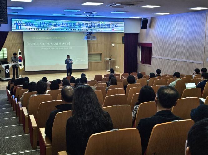 (포탈뉴스통신) 영동교육지원청은 3일, 학교지원센터 3층 시청각실에서 남부 3군(보은·옥천·영동) 소속 유·초·중·고등학교 교육활동 보호 업무 담당자 60명을 대상으로 ‘교육활동 보호 역량 강화 연수’를 개최했다.