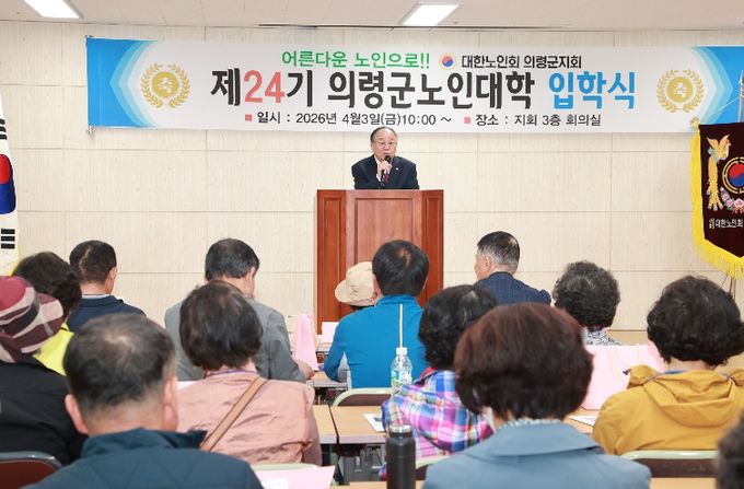 (포탈뉴스통신) 대한노인회 의령군지회(지회장 장혁두) 부설 제24기 의령군노인대학(학장 하만용) 입학식이 3일 의령노인복지관 3층에서 오태완 군수와 김규찬 의령군의회의장을 비롯한 기관단체장과 60명의 신입생이 참석한 가운데 거행됐다.