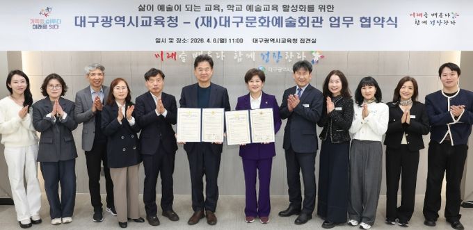 (포탈뉴스통신) 대구시교육청은 4월 6일 오전 11시, 대구시교육청 접견실에서 (재)대구문화예술회관과 ‘학교 예술교육 활성화’를 위한 업무협약(MOU)을 체결했다.