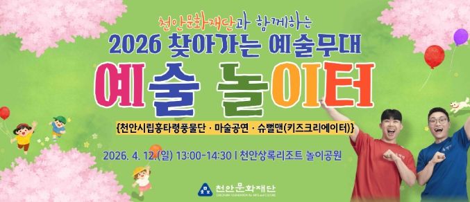 (포탈뉴스통신) 천안문화재단은 오는 12일 천안상록리조트 놀이공원 일원에서 ‘예술놀이터’를 운영한다고 7일 밝혔다.