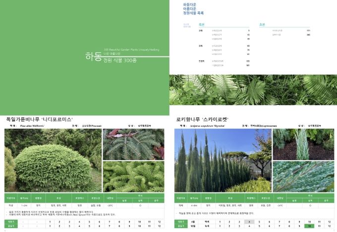 이번 도감에는 하동군 자생식물과 국내외 도입 식물 중 정원 소재로 가치가 높은 300종(교목, 관목, 초화류, 지피식물 등)이 수록됐다.
