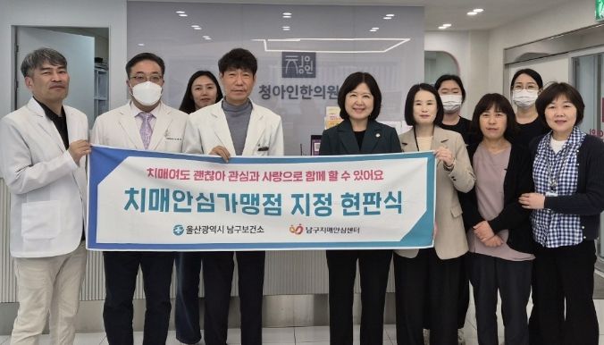 (포탈뉴스통신) 울산 남구 치매안심센터는 8일 삼산동 청아인한의원을 신규 치매안심가맹점으로 지정하고 현판식을 개최했다.