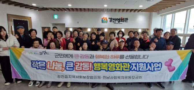 (포탈뉴스통신) 강진읍지역사회보장협의체(공동위원장 정명흥·임창복)가 마련한 ‘사랑의 한끼’와 ‘행복영화관’ 연계 사업이 지난달 31일 동명·점수·신풍마을 어르신 40여 명의 참여 속에 따뜻한 감동을 전하며 성황리에 마무리됐다.