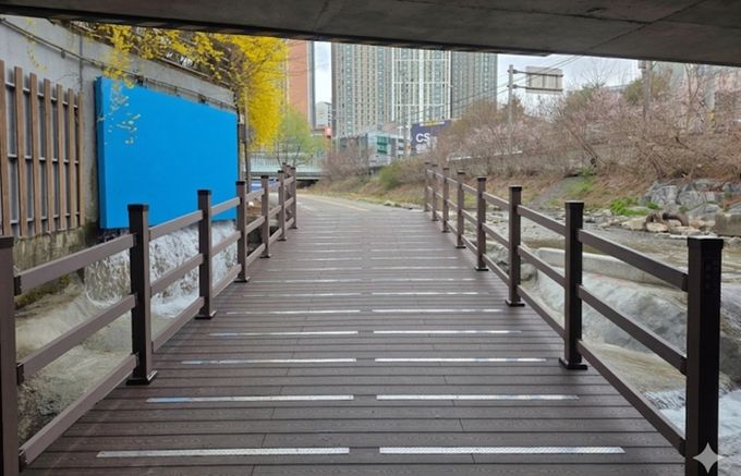 구는 성복천 배수통문을 정비하고, 산책로와 자전거도로도 함께 정비해 보행 환경과 이용 안전성을 개선했다.
