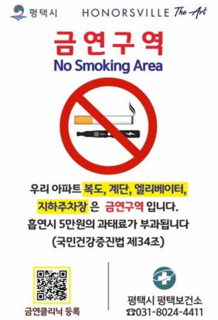 평택보건소 관계자는 “금연아파트는 주민들이 스스로 건강한 생활터전을 만들겠다는 약속의 결과물”이라며, “앞으로도 금연아파트 지정을 지속적으로 확대하여 간접흡연 걱정 없는 『금연도시 평택!』을 실현해 나가는 데 최선을 다하겠다”고 전했다.