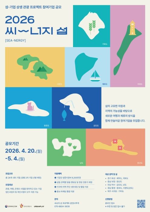 (포탈뉴스통신) 문화체육관광부가 주최하고 한국관광공사가 주관한 2026년 씨너지『섬-기업 상생 관광프로젝트』 참여기업 공모를 오는 4월 20일 월요일 부터 5월 4일 월요일까지 모집한다.
