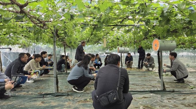 이번 과제교육에서는 시설하우스 야간보광에 따른 생육촉진효과에 대한 특강과 고온 대응 스마트 장비 활용 사례 발표가 진행됐으며, 포도재배 현장의 문제 해결방안을 모색하는 다양한 논의가 이뤄졌다. 또한 김천지역 포도 재배 농가 현장 컨설팅과 포도품종 생산현장 견학 등 포도산업 발전과 기술 확산을 위한 실질적인 협력 방안도 모색했다.