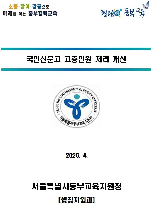 동부교육지원청은 오는 5월 1일부터 해당 체계를 본격 시행하고, 민원 처리 단계별 대응 절차와 고충민원 대응 전략 등을 각 부서에 안내·확산할 계획이다.