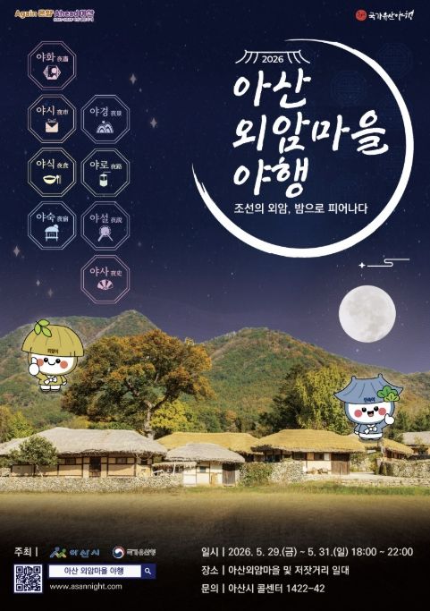 (포탈뉴스통신) 아산시의 대표적인 야간 문화유산 축제인 ‘2026년 아산 외암마을 야행’이 오는 5월 29일부터 31일까지 3일간 송악면 외암민속마을과 저잣거리 일원에서 펼쳐진다.