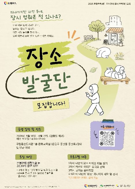 (포탈뉴스통신) 서울 은평구는 다음 달 16일부터 구립증산도서관에서 은평문화재단이 주관하는 2026년 ‘구석구석 동네 문화예술교육’ 지원사업의 일환으로 공모에 선정된 예술교육 프로그램 ‘장소발굴단’을 운영한다고 밝혔다.