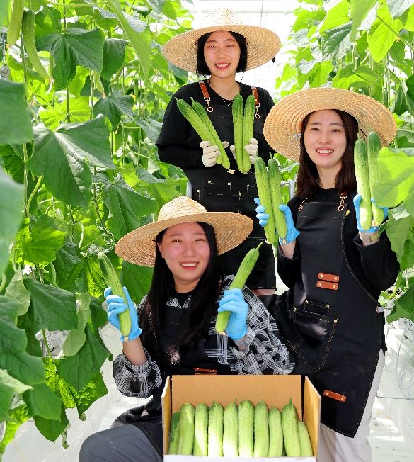 (포탈뉴스통신) 지난 24일 충북 괴산군 소수면 아성리의 한 스마트팜 연동하우스. 30도에 육박하는 하우스 열기 속에서 세 명의 젊은 여성이 오이 수확에 한창이다.