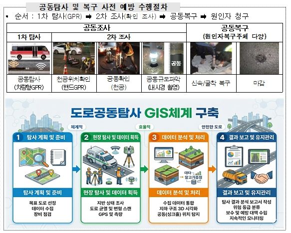조사에는 최첨단 지표투과레이더(GPR) 장비가 활용된다. 해당 장비는 전자기파를 지중으로 발사해 되돌아오는 신호를 분석하는 방식으로, 굴착 없이도 지하 시설물의 상태와 공동의 유무 및 규모를 파악할 수 있다.