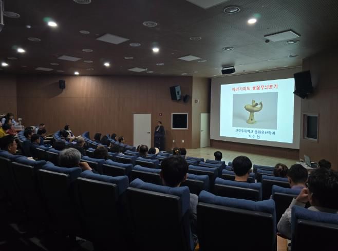 지난 24일 첫 강의는 신경주대학교 조수현 교수가 ‘아라가야의 불꽃무늬토기’라는 주제로 진행했으며, 아라가야를 대표하는 불꽃무늬 토기의 기원과 분포, 형태에 따른 분류 등에 대한 전문적인 내용을 다뤘다.