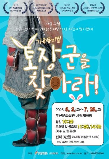 (포탈뉴스통신) (재)부산문화회관은 가족 뮤지컬 '토장군을 찾아라'를 오는 5월 2일부터 7월 25일까지 부산문화회관 사랑채극장에 올린다.