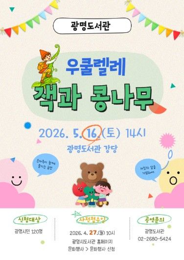 (포탈뉴스통신) 광명시 광명도서관이 오는 5월 16일 오후 2시 온 가족이 함께 즐길 수 있는 창작뮤지컬 '우쿨렐레, 잭과 콩나무'를 연다.