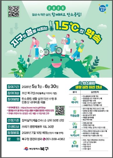 (포탈뉴스통신) 부산 북구는 오는 5월 1일부터 ‘지구의 열을 식히는 1.5℃의 약속’ 사업을 추진한다고 밝혔다.
