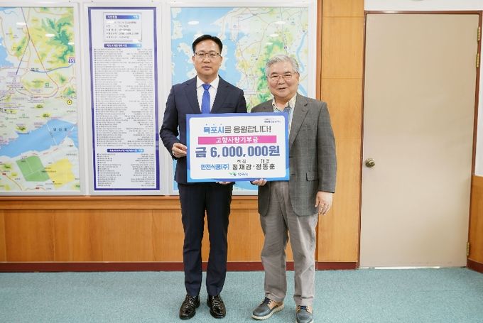 (포탈뉴스통신) 목포시는 지난 27일 만전식품 정재강 회장이 시를 방문해 고향사랑기부금 600만 원을 기탁했다고 밝혔다.