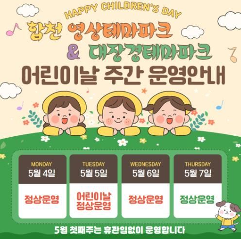 (포탈뉴스통신) 합천군은 5월 가정의 달을 맞아 5월 첫째 주(5.4.~5.6.)동안 합천영상테마파크와 대장경테마파크를 휴관일 없이 정상 운영한다고 28일 밝혔다.