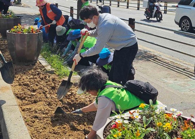 이번 활동은 특성화 사업부지인 165번 버스 종점과 호평동 행정복지센터 부설주차장에서 진행됐으며, 호평동 지역봉사단이 참여해 채송화, 황색 코스모스, 데이지 등 다양한 초화류를 식재했다.