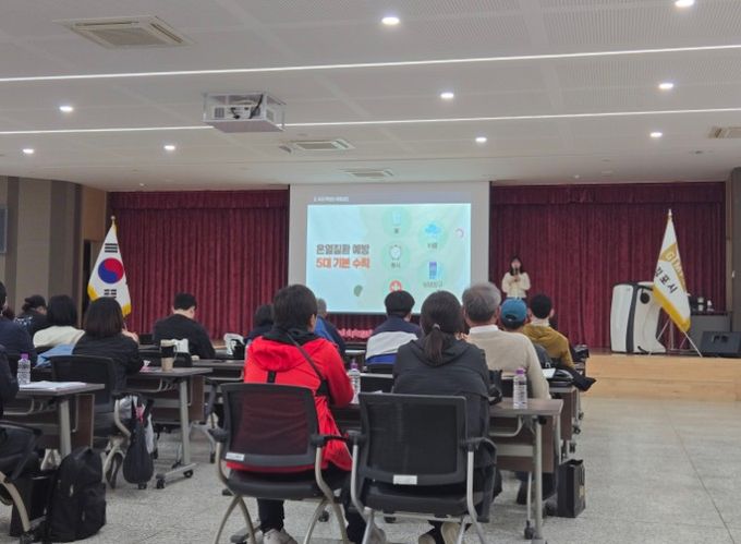 첫 번째 교육에서는 한국산업안전보건공단 경기중부지사 윤지민 강사가 다가올 여름철 폭염에 대비한 온열질환 예방 수칙을 중점적으로 다뤘다. 특히 고용노동부와 공단이 함께 추진 중인 ‘지하철 역사 생수 비치 캠페인’ 등 현장 중심의 폭염 대책을 소개하며, 야외 작업 시 충분한 수분 섭취와 규칙적인 휴식의 중요성을 거듭 강조했다. 아울러 산업재해 예방 수칙, 근골격계 질환 예방법 등 실무 중심 보건 교육과 함께 ‘신체 나이 테스트’를 진행해 교육생들의 높은 몰입도를 이끌어냈다.
