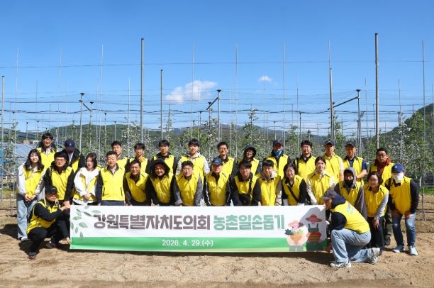 (포탈뉴스통신) 강원특별자치도의회는 4월 29일(수) 화천군 사내면 일원 사과 농가를 찾아‘강원특별자치도의회 농촌일손돕기 봉사활동’을 실시했다.
