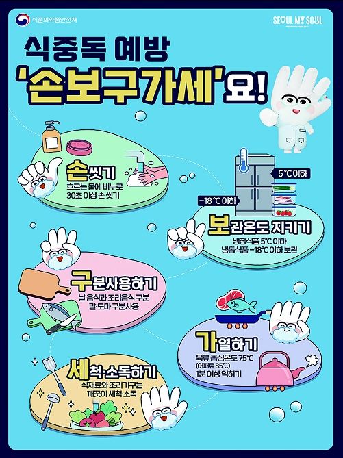 서울시는 식중독 예방을 위한 시민 인식 개선을 위해 현장 위생점검과 병행해 ‘손보구가세’요! 홍보도 집중 진행했다.