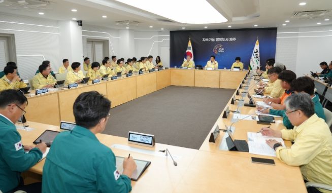 제주도는 18일 오전 도청 한라홀에서 오영훈 지사 주재로 주간혁신성장회의를 개최하고 교통 서비스 개선, 국정과제 대응, 통합돌봄 이용자 확대, 을지훈련 등 주요 현안을 논의했다.