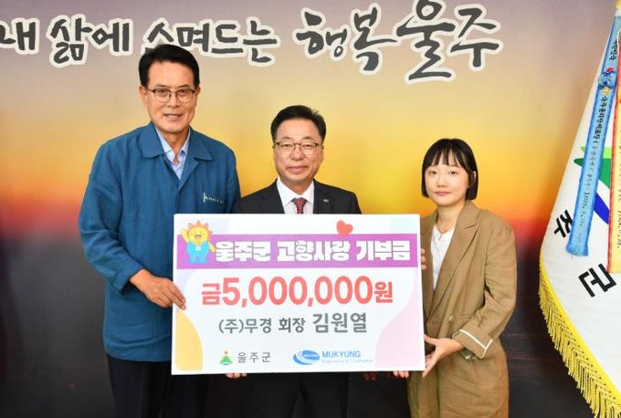 (포탈뉴스통신) 김원열 ㈜무경 회장이 26일 울주군 지역 발전을 위해 고향사랑기부금 500만원을 기탁했다.