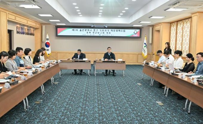 (포탈뉴스통신) 울산 중구가 8월 26일 오후 2시 중구청 중회의실에서 ‘제3차 울산광역시 중구 기후위기 적응대책’ 수립 용역 중간 보고회를 개최했다.