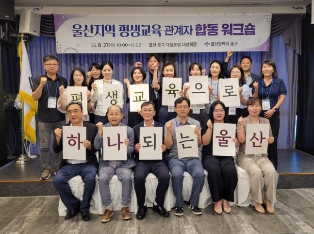(포탈뉴스통신) 울산 중구가 8월 27일 오전 10시 중구 다움호텔 대연회장에서 ‘울산지역 평생교육 관계자 합동 공동 연수(워크숍)’를 개최했다.