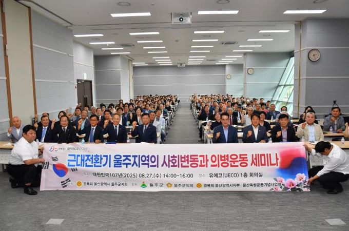 (포탈뉴스통신) 광복회 울주군지회가 27일 울산전시컨벤션센터에서 광복 80주년을 기념해 지역 의병활동의 역사적 가치와 독립정신을 되새기는 ‘언양 의병활동사 재조명 세미나’를 개최했다.