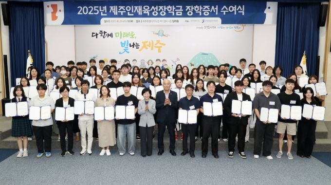 (포탈뉴스통신) 제주특별자치도가 27일 오전 10시 도청 탐라홀에서 2025년 제주인재육성 장학금 장학증서 수여식을 열고, 제주 출신 고등학생 및 대학(원)생 222명에게 장학금을 전달했다.
