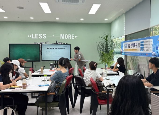 이달 18일부터 28일까지 열린 하반기 취업스터디 맞춤 전략 특강에서는 45명의 구직자가 참여한 가운데 ▲반도체산업 ▲자동차산업 ▲석유화학 ▲공기업 등 4개 산업 분야를 대상으로 집중 강의를 진행했다.