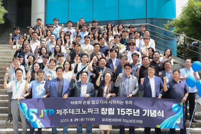 제주TP는 지난달 29일 제주벤처마루 이노비즈카페에서 현장근무자를 제외하고 지영흔 원장과 130여 명의 직원이 참여한 가운데 ‘서로의 손을 잡고, 다시 시작하는 우리’를 주제로 창립 15주년 기념식을 개최했다.