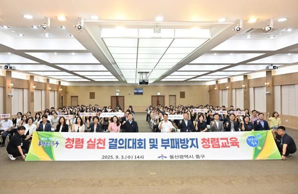 (포탈뉴스통신) 울산 중구가 9월 3일 오후 2시 중구청 대회의실에서 ‘2025년 청렴 실천 결의대회 및 부패 방지 청렴교육’을 진행했다.