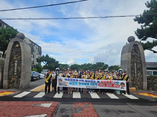 캠페인은 지난 1일 송당초·애월초를 시작으로 10일 함덕초 선인분교, 16일 선흘초, 19일 대흘초에서 순차적으로 열리며, 학생들의 안전한 등·하굣길을 위한 교통지도 활동이 이어질 예정이다.