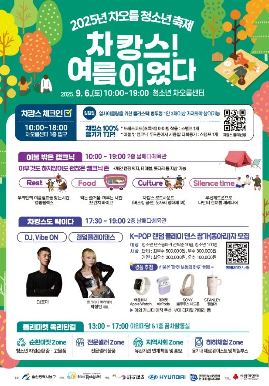 서동욱 남구청장은 “울산을 대표하는 청소년차오름센터에서 열리는 차캉스 행사에 많은 분들이 참여해 여름날의 추억을 많이 남기시길 바란다”고 전했다.