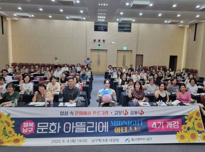 (포탈뉴스통신) 울산 남구는 남구만의 문화예술 프로그램인 ‘행복남구 문화 아뜰리에’ 4기 프로그램이 100여 명의 구민이 참여한 가운데 성황리에 개강했다고 밝혔다.