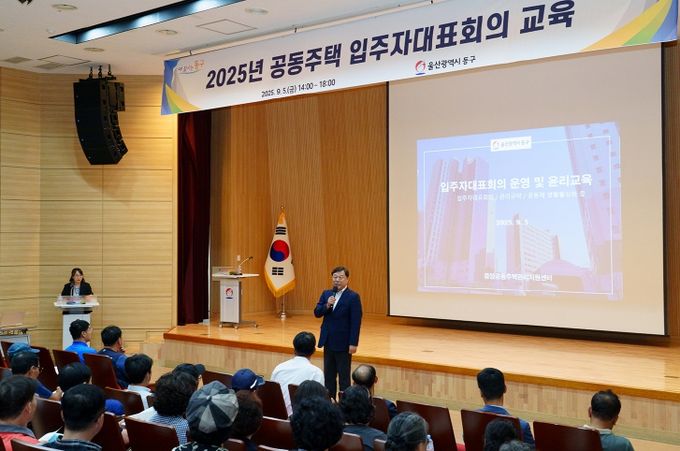 (포탈뉴스통신) 울산 동구는 9월 5일 오후 2시 동구청 5층 중강당에서 의무 관리 대상 공동주택 단지의 입주자대표회의 구성원과 관리사무소장 등 관계자 140여 명이 참석한 가운데 공동주택 입주자대표회의 교육을 했다.
