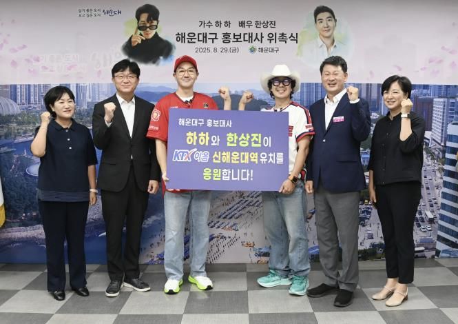 (포탈뉴스통신) 지난 8월 29일 해운대구 홍보대사로 위촉된 가수 하하 씨와 배우 한상진 씨가 ‘KTX-이음 신해운대역 유치’ 응원에 나섰다.